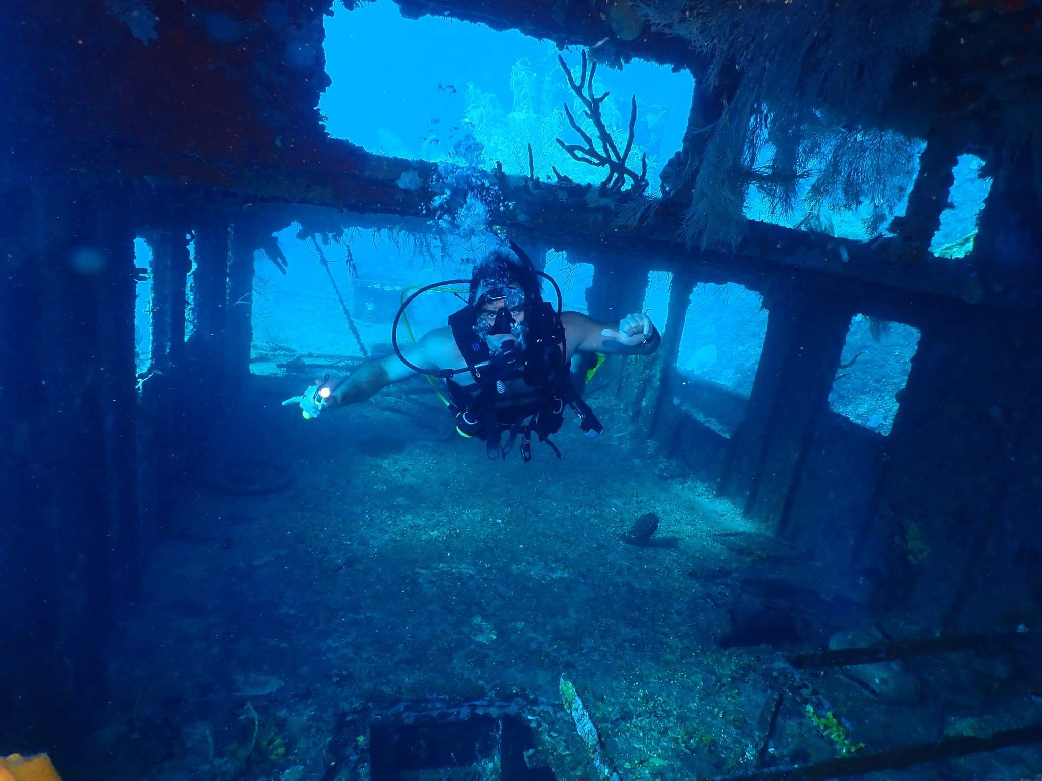 The wreck of the Mr. Bud sits at a depth of approximately 60 feet surrounded by coral and sand beds right next to a steep wall makes it great for all divers to enjoy. Oh, and its located right in our “Back Yard”.